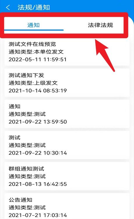 4、在“法规/通知”栏目中切换至“法律法规”标签,可查阅相关法律文件与政策通知。