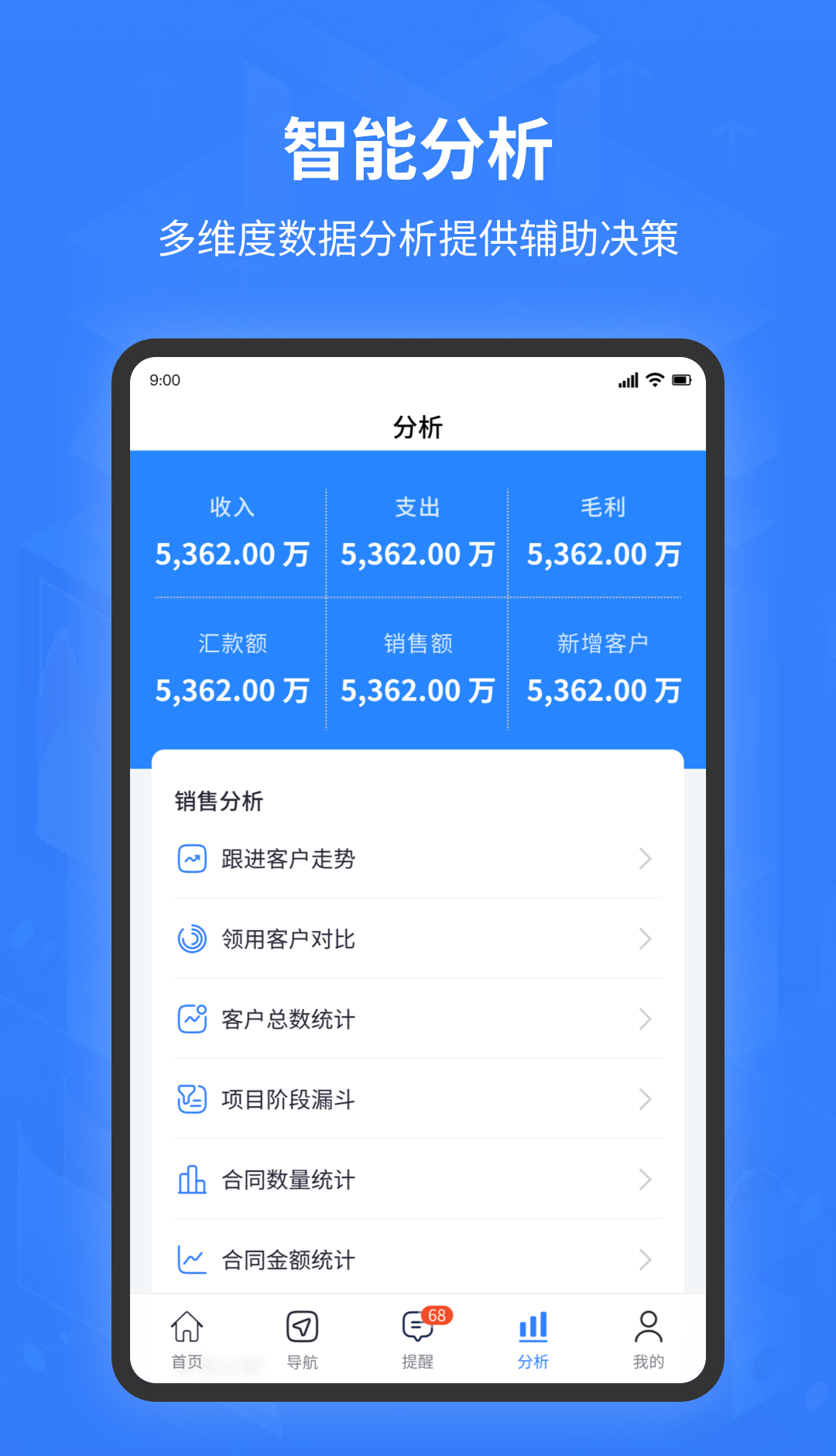 4、对相关的销售数据可以进行智能分析,实时对其多维度分析查看。