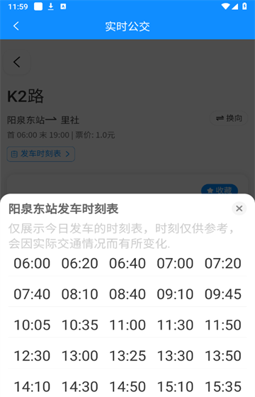 4、就能够看到详细的发车时间了。