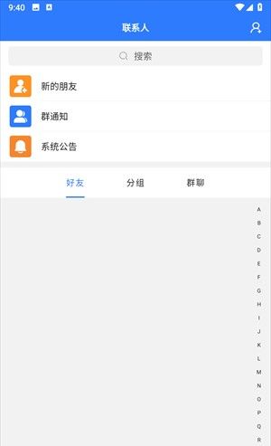 2、点击联系人,你可以加好友,进行好友的分组与管理,创建群聊。