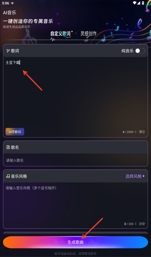 基于用户提供的主题、关键字或情感倾向,智能生成与节奏和韵律相匹配的歌词,并支持多语言输出。