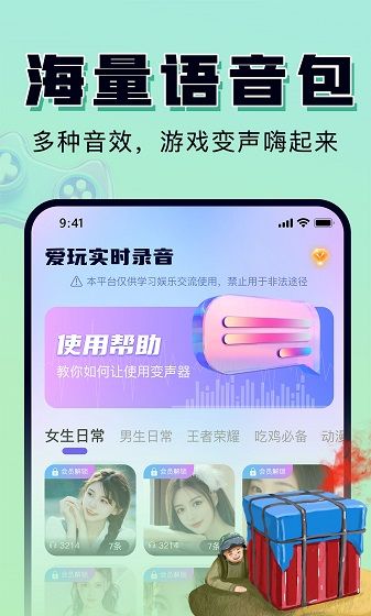 嗨玩实时变声器是一款功能强大的音频处理软件,电音,李云龙,男变女,女变男,萝莉和型男各种声音,应用尽有,让你在游戏开黑中“大展身手”。实时聊天语音转换,为自己的声音增加独有的特色,让您和朋友聊天增添更多的欢乐,搞怪逗乐神器,聊天氛围更加的轻松。秒变戏精 明星、爱豆、萝莉、御姐、正太、大叔各种声音“脱口而出”高度还原的声音,让您一秒入戏,轻松操作,一键录制,快来体验属于您的声音模仿盛宴吧!