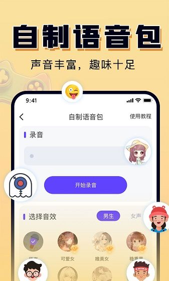 2、丰富的音效:内置男声、女声、童声、机器人声、魔鬼声、外星人声等一百多种有趣的变声音效,创意无限。