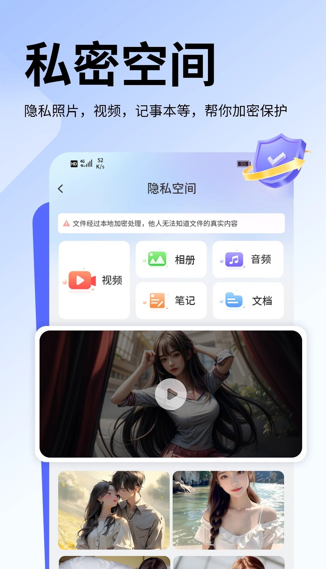 3.应用加密:对个人图片、视频、游戏应用进行安全加密和隐藏,防止隐私泄露。