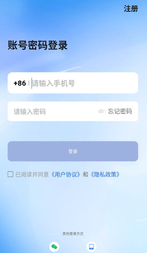 3、在登录页面输入自己的账号密码,没有账号的可以点击上方的注册。