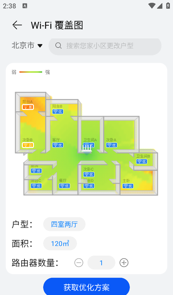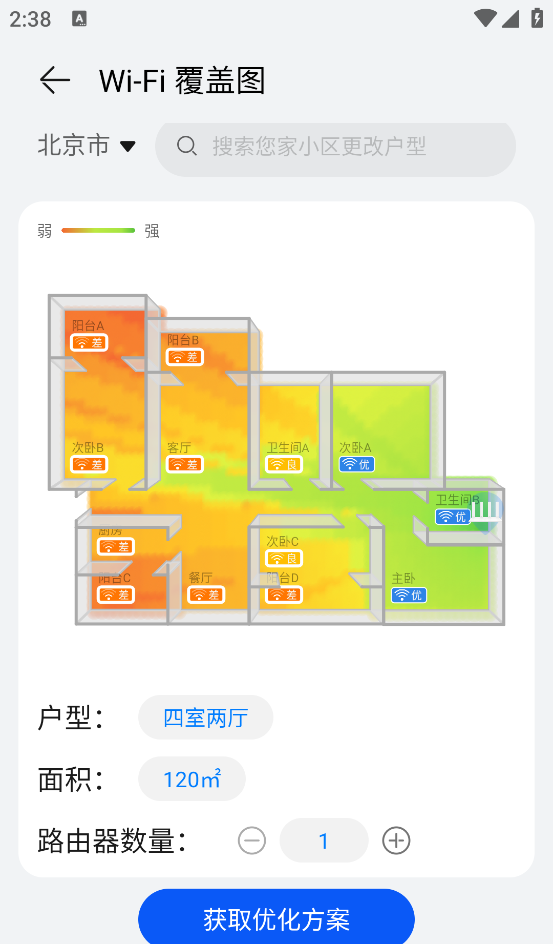 10、如下图,将Wi-Fi放入卫生间b,Wi-Fi覆盖整个房子的情况。