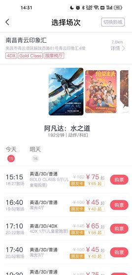 1、特色厅预约:可提前预订4DX动感座椅、SCREENX三面屏、LUXE巨幕等特色影厅,畅享前沿视听科技。