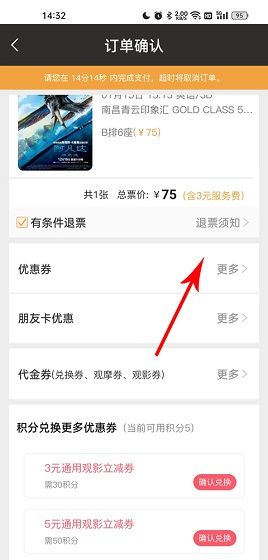 4、因为你是新注册用户,一般平台都会送优惠券,所以使用优惠券抵扣相应的金额,购票会更加便宜。