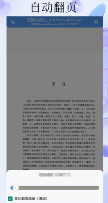 3、它可以设置为自动翻页,方便阅读PDF文件。