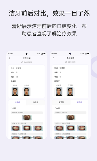 乐齿拍机构版是一款集智能采集、分析与对比为一体的专业口腔健康管理应用,通过高效的数据采集、多场景适配和AI智能分析,为患者提供精准、便捷的口腔健康服务。应用通过智能AI技术和便携式拍摄设备,实现从数据采集到精准分析的全流程优化,为用户提供全面的口腔健康支持。无论是院内专业采集,还是院外便捷拍摄,乐齿拍都能满足多场景需求,帮助用户轻松掌控口腔健康状况。
