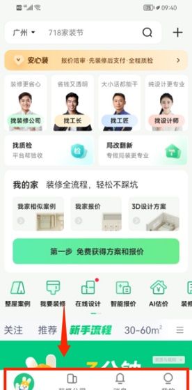 3、通过底部导航栏选择装修公司等功能使用服务。