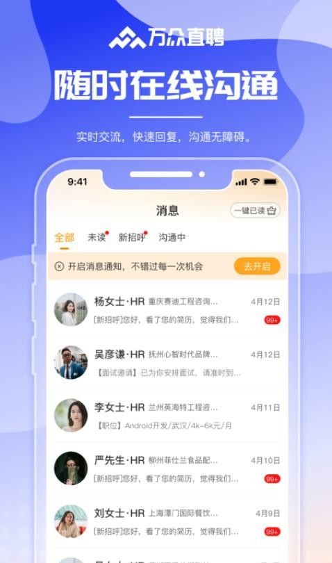 内置的即时通讯工具允许求职者和招聘人员直接沟通,实时更新工作细节和面试安排。缩短求职周期,快速实现就业意向。