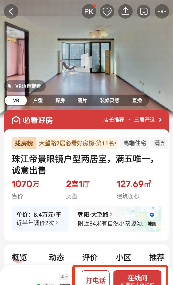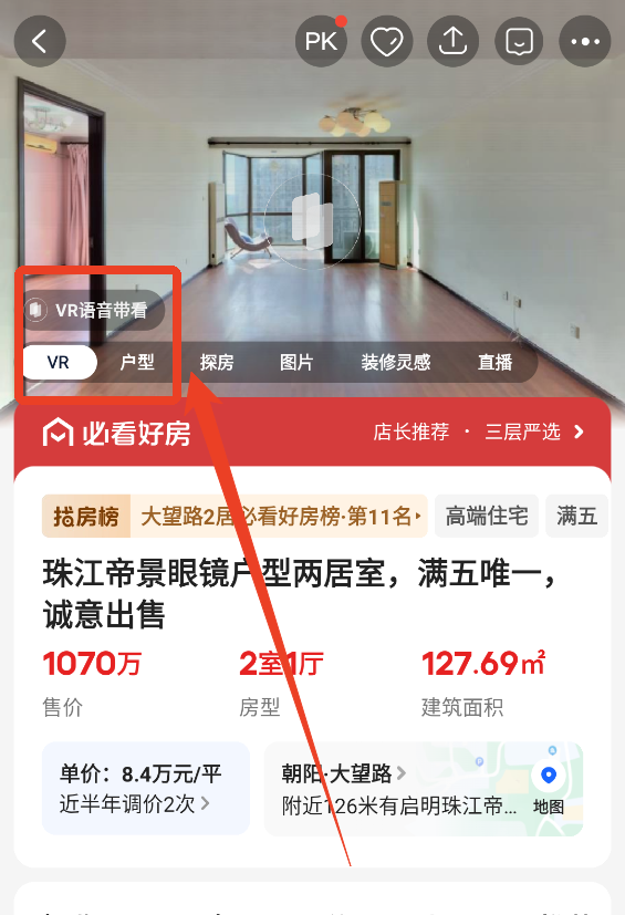 3、选择一个房屋,可以看到有很多详细的信息,部分房源有VR效果,可以直观感受这个房子的布局。