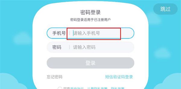 3、在登录页面,点击输入框,在输入框内输入手机号。