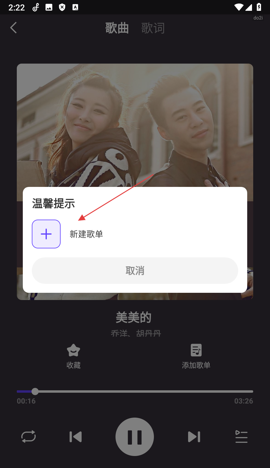 3、在温馨提示框中,点击【新建歌单】或选择已有歌单选项。