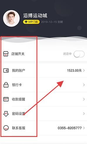2、进入我的页面,可操作店铺开关查看我的账户余额,还能管理银行卡设置收款提醒修改密码或联系客服,保障店铺运营。