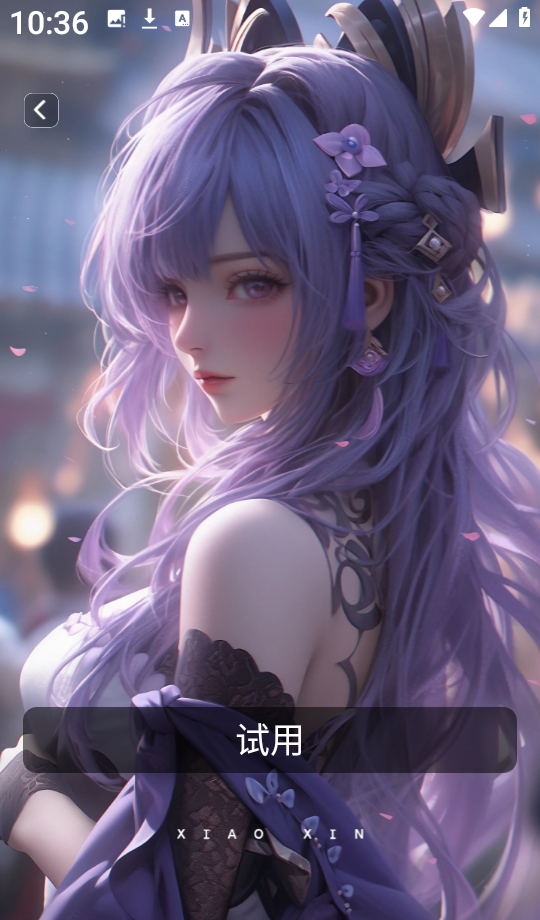 3、点击你喜欢的壁纸缩略图,进入预览页面后,选择“试用”功能即时查看效果。