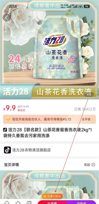 3、在商品详情页确认商品信息后,可选择分享赚或自购省,若选分享,点击对应按钮进入商品分享页面。