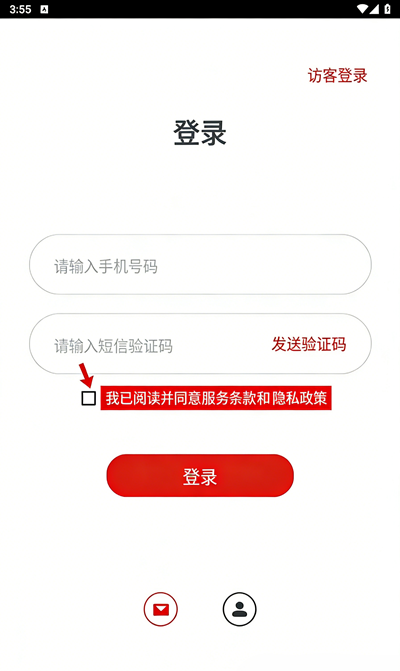 3、阅读并勾选 “我已阅读并同意服务条款和隐私政策” 前的复选框。