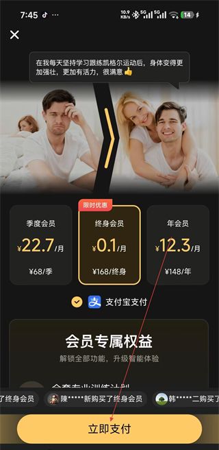4、如果你需要解锁更多的培训项目,你可以选择成为会员。在会员购买界面,选择合适的会员套餐,点击“支付”按钮完成支付。