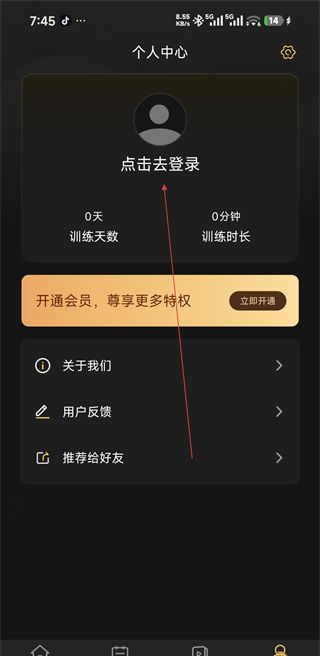 1、打开凯格尔训练,进入个人中心页面,点击“登录”按钮,您将被重定向到登录界面。