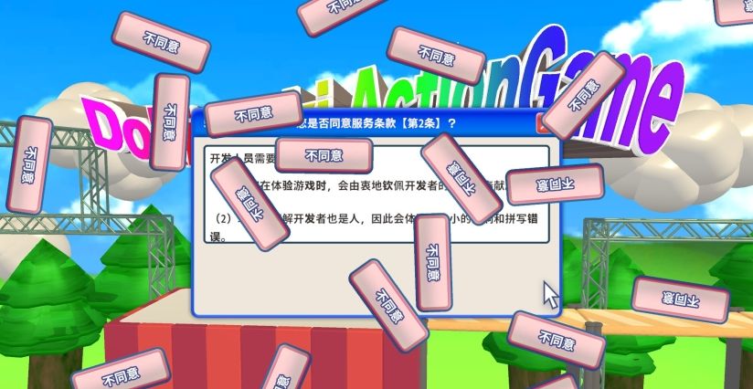 核心玩法是通过各类迷你游戏完成每条协议的“同意”操作:需像抓娃娃机般精准操控获取同意按钮,在弹幕雨中躲避障碍,用砖块消除开辟通路,还需破解拼图、迷宫运钥匙、物理弹射等多样关卡。任何失误(误点拒绝、超时)都将重置至第一条协议重新开始,极度考验耐心与集中力。
