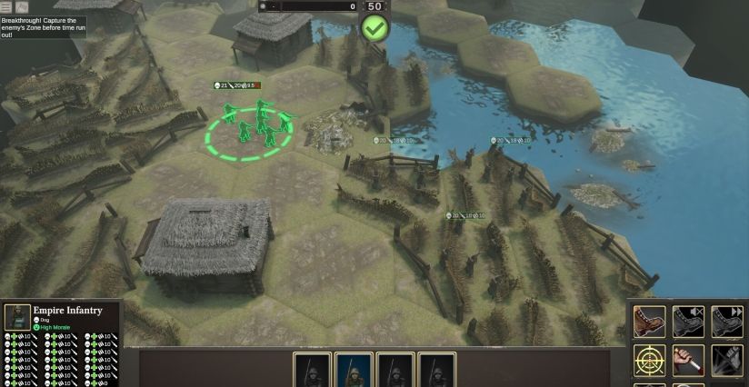在一场回合制战术战斗中,你将率领数支由不同素质和士气的士兵组成的队伍。