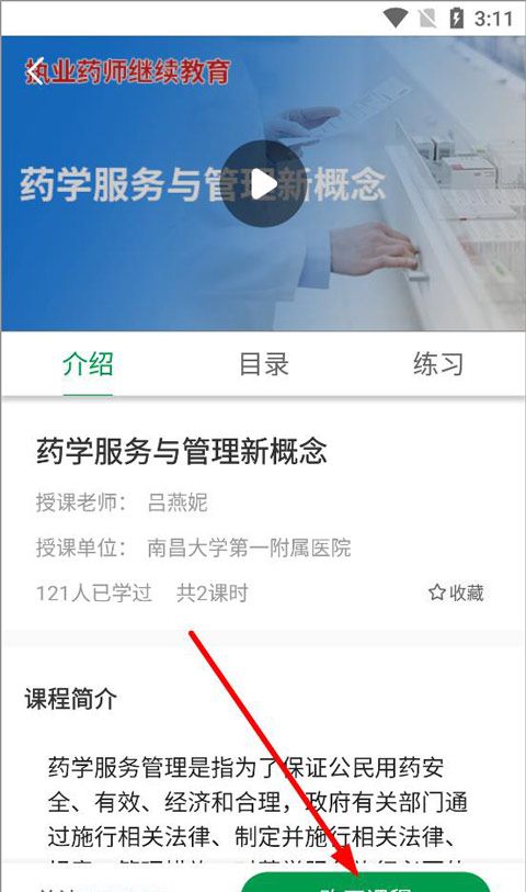 3、进入课程注册页面,其中有课程介绍,目录和课后练习。您可以看到基本信息,如讲师和教学单位。点击右下角的“购买课程”按钮。