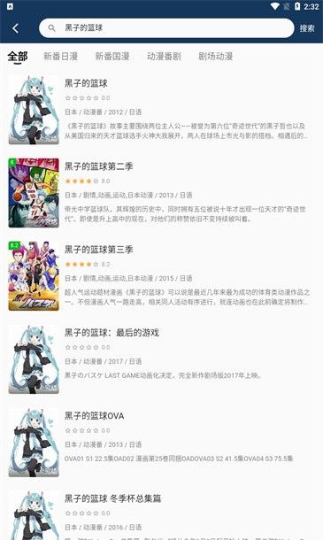 2、输入想看的动漫名称,例如黑子的篮球,然后点击搜索