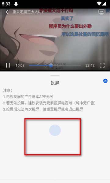 3、打开想投屏观看的视频,然后点击右上角如图所示的投屏按钮.