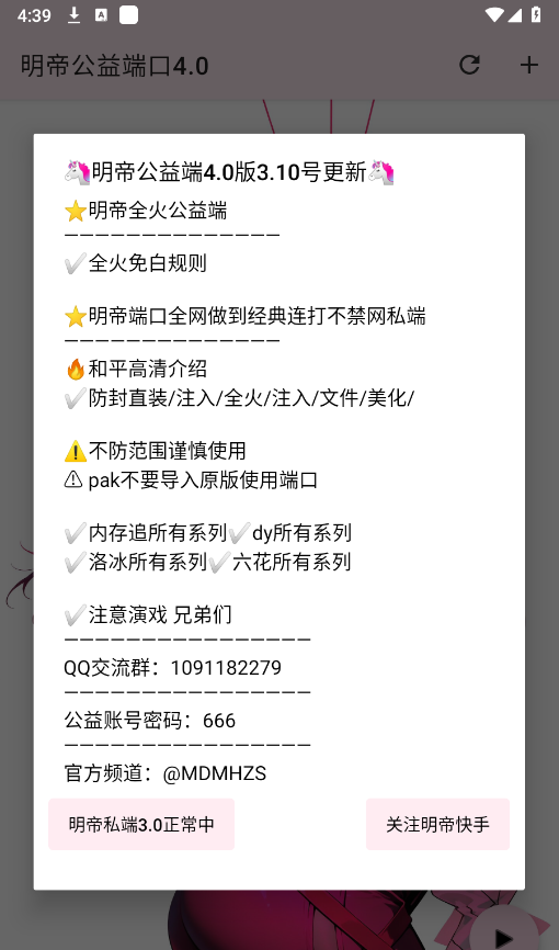 明帝公益端口是专为《和平精英》游戏设计的辅助工具。明帝公益端口app可以为玩家提供端口,一旦打开,就可以顺利进入游戏并体验乐趣。同时,您还可以将一些弱网络工具结合使用,这可以大大提高防阻塞的机会。某些辅助功能需要ROOT权限才能解锁。如果有真正的需要,可以使用Xposed框架来授予权限。此外,平台支持手动输入DNS地址,以修改网络环境并优化网络速度!