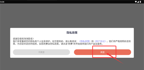 1、启动应用程序后,单击隐私政策页面上的同意按钮进入主界面。