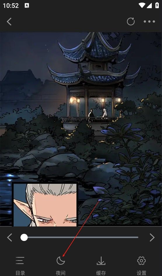 3、在阅读过程中,点击左下角的月亮也可以切换到夜间模式。