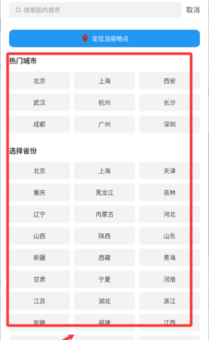 1、单击红色框中的城市,然后选择一个进行输入。