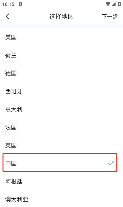 3、这需要用户进行注册操作,我们选择了中国地区。