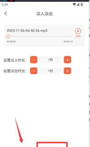 3、使用淡入/淡出功能调整剪辑的过渡效果,以及调整音量或添加简单的混响效果。