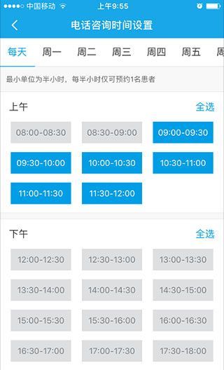4、点击“通话时间段设置”,设置一个方便的接听电话时间,这样患者只能在设定的空闲时间咨询健康问题。