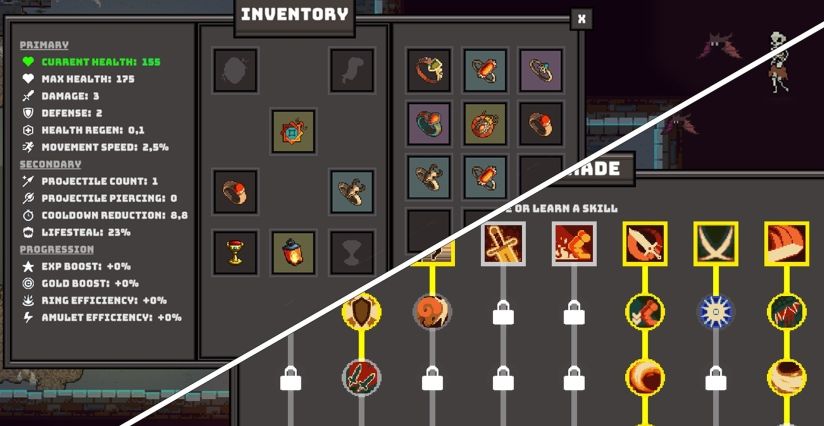4、复古养成,Roguelite体验: 将角色的精通等级提升至最高10级,解锁全新能力与力量。在魔法商店消耗魔法水晶,为所有角色购买永久升级。即使当前Run结束,你的进度依然会保留。