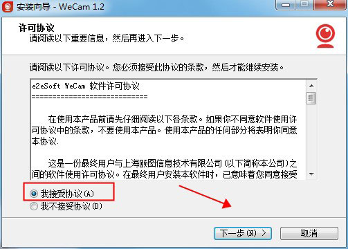 3、勾选我接受协议,下一步