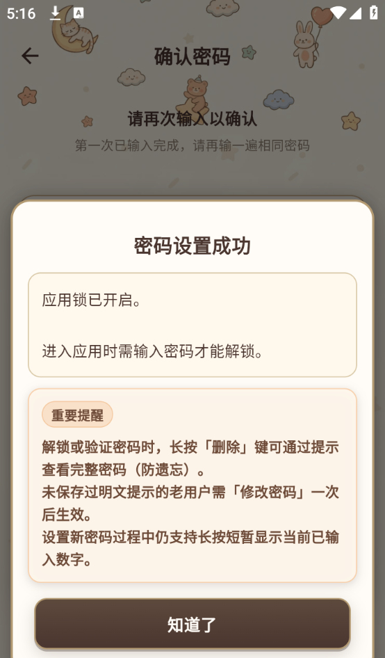 5、最后出现“密码设置成功”弹窗框提示,在点击“知道了”按钮就完成了。