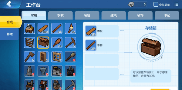 当大家从矿洞上来,满载而归的时候,是不是有时会遇到包裹已满的尴尬处境。这时,我们就需要去工作台,合成一个甚至数个储物箱来缓解自己的行囊啦!