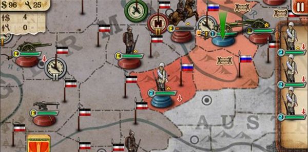 2、第一天,在华沙和波兰西南角的一级工厂里造3门大炮(华沙1门,西南角2门),先用西南角的大炮轰一下旁边西里西亚的德国步兵(要打到他掉一大半血,否则重来),华沙的大炮轰波兰西北角的德国机枪兵