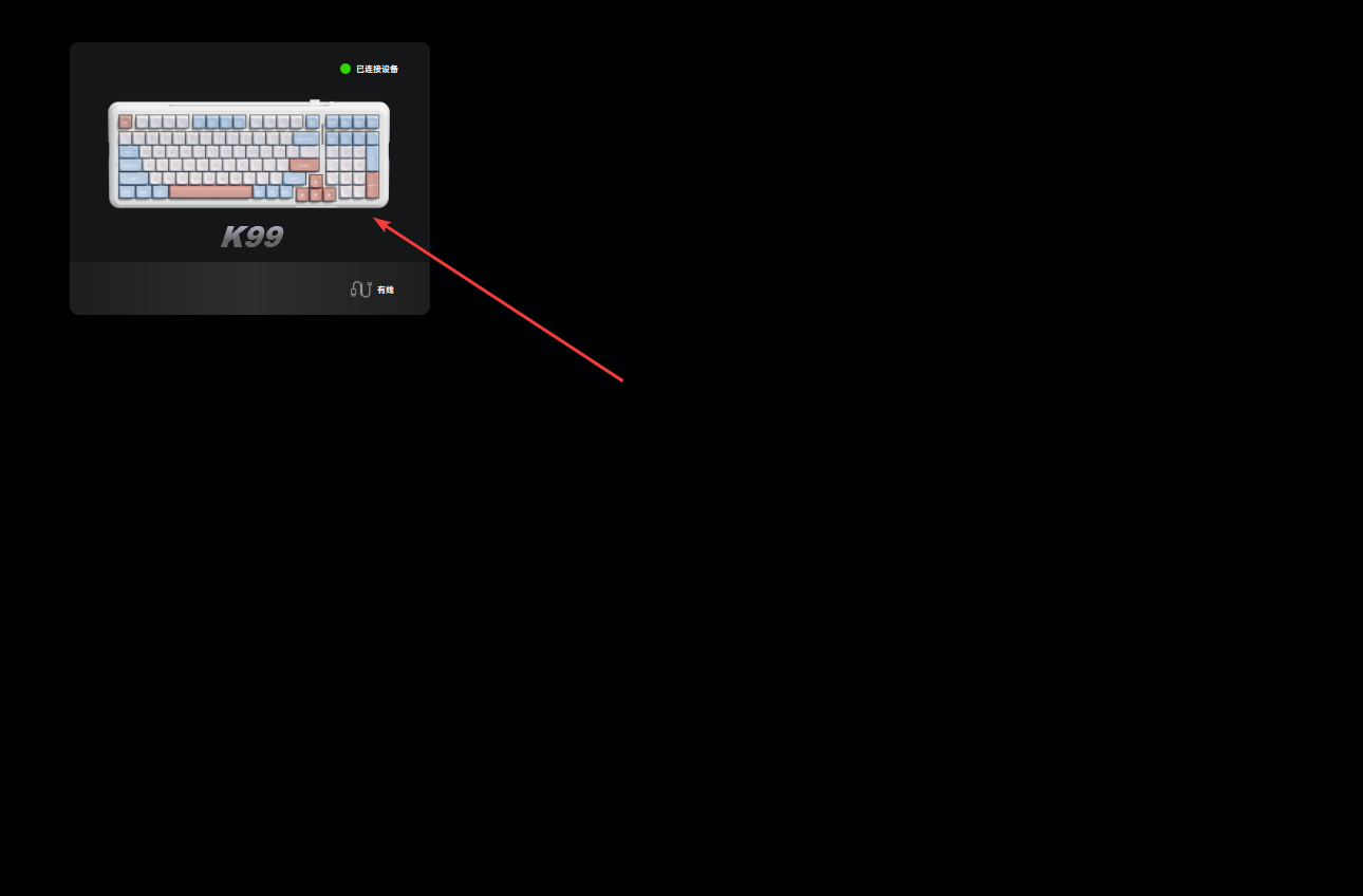 1、使用有线或无线连接键盘和电脑,打开MCHOSE HUB将自动识别连接的设备,点击该设备