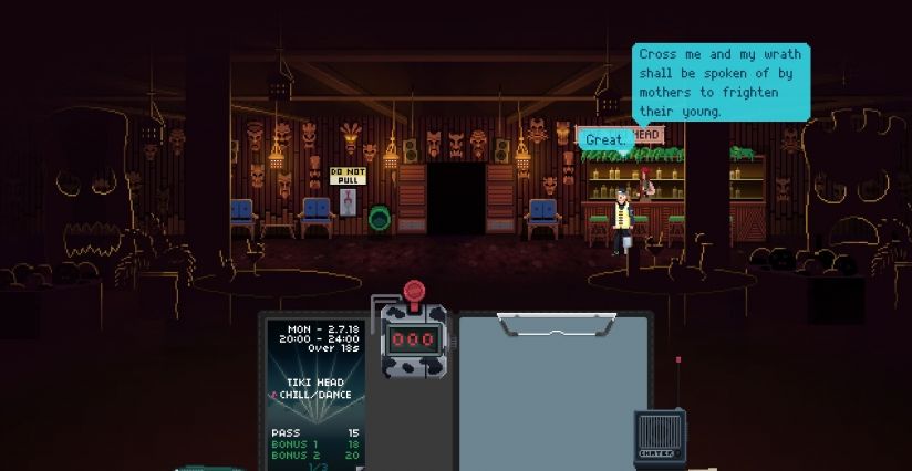 《今晚没开》是一款由PanicBarn开发、No More Robots发行的独特游戏,2018年7月上线Steam平台。游戏设定在一个架空世界,英国脱欧失败,极右翼政府上台,排欧政策横行。玩家扮演的主角一夜之间从英籍沦为“欧裔”,陷入艰难处境。为求生存,你要通过手机应用BouncR找工作,在酒馆、夜店等场所看门。过程中,需检查来宾身份证、比对嘉宾名单,甚至与VIP对暗号。你还能通过接受贿赂等违规手段牟利,但过度滥用权力将引发严重后果。游戏将时间管理与RPG玩法相融合,以像素画风呈现,带你在充满政治隐喻的荒诞世界中努力求存。