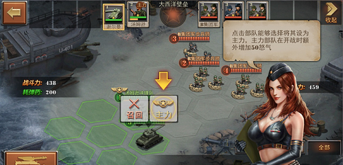 设置主力,可以为部队开战时增加50点怒气,比其它没有设置主力的部队更快的释放大招,增加作战能力达到出其不意的效果!