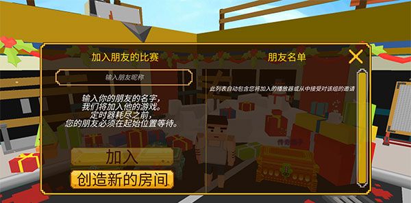 2、点击和朋友一起玩,加入朋友的比赛,或者自己创建新的房间;