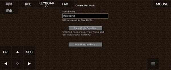 7、进入此界面后选择你的游戏模式以及名称并点击下方的“create new world”;