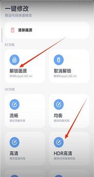 2、然后进入修改界面,点击解锁画质,然后选择画面清晰度,有流畅、高清、均衡等几种提供选择