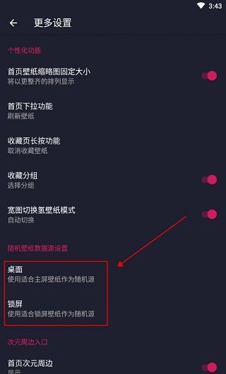 3、在更多的设置中,我们可以找到随机壁纸数据原始设置这里有两个选项:主屏幕和锁屏。您可以根据自己的需要进行选择。