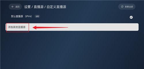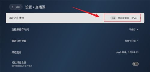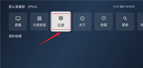 3、在默认直播源(IPV4)界面选择“设置”按钮